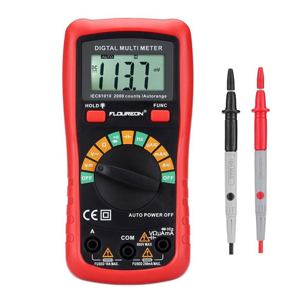 FLOUREON Classic Digital Multimeter Auto Range Pocket Multi Tester with NCV Backlight LCD 2000 Counts AC/DC Voltage Current Diode Transistor Audible Continuity Test