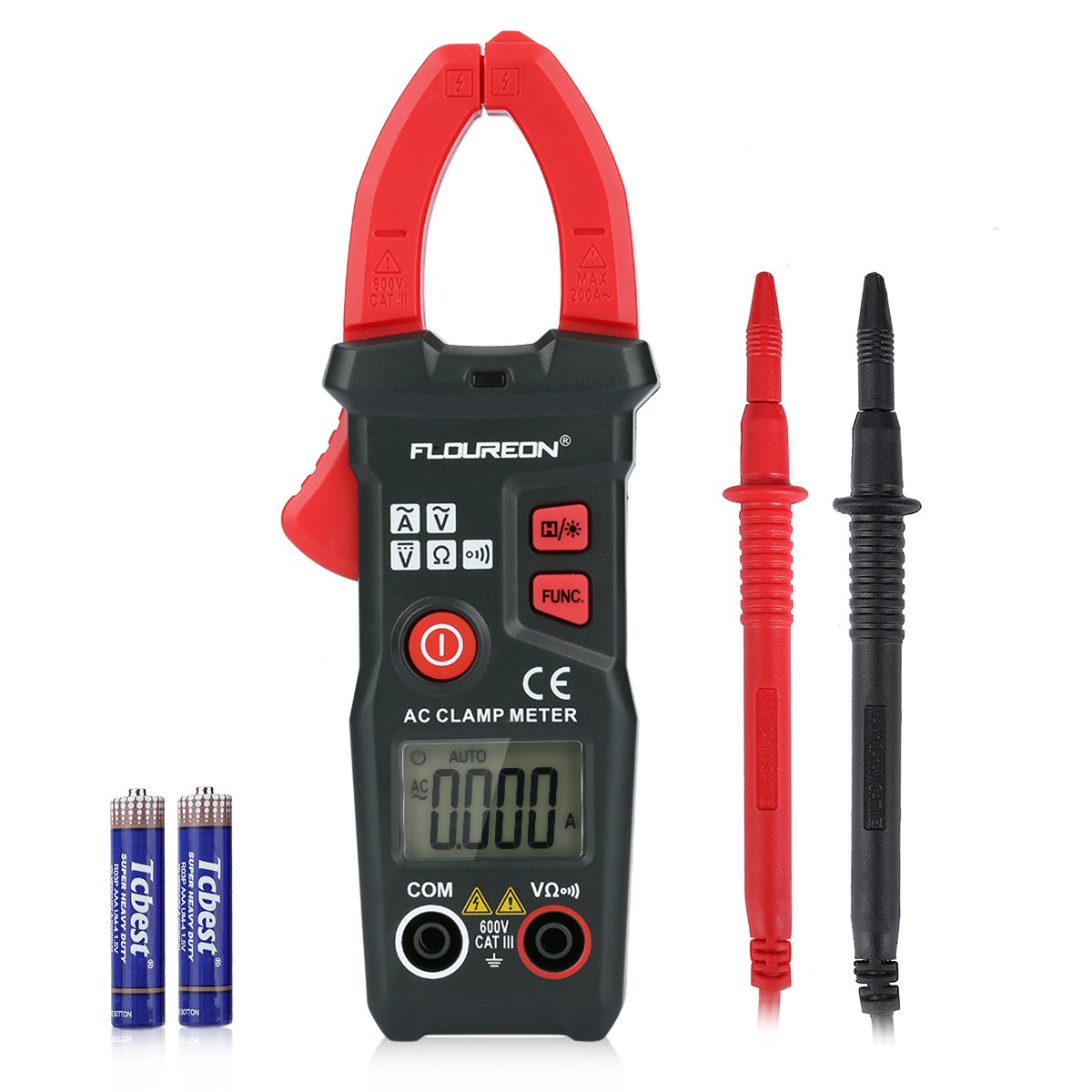 FLOUREON Mini Digital Clamp Meter Multimeters 6000 Counts Auto-ranging Multimeter with AC/DC Voltage Current Resistance Tester with LCD Backlight